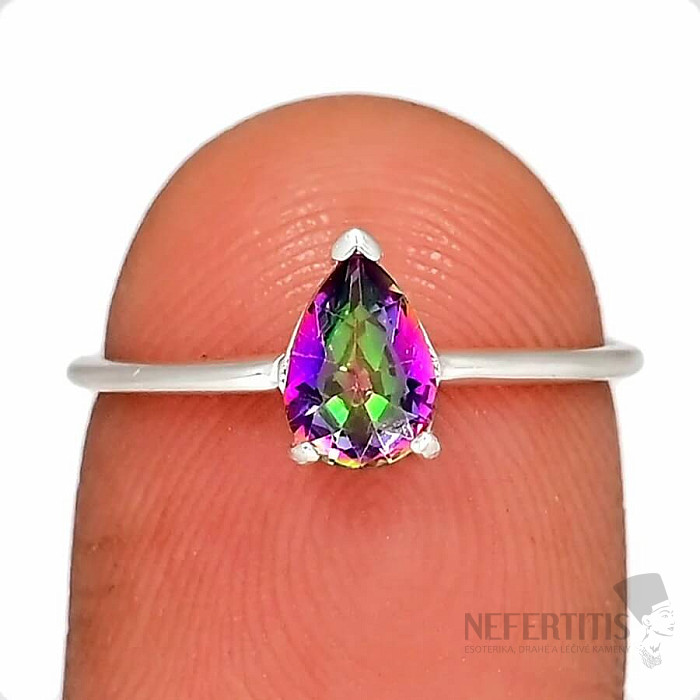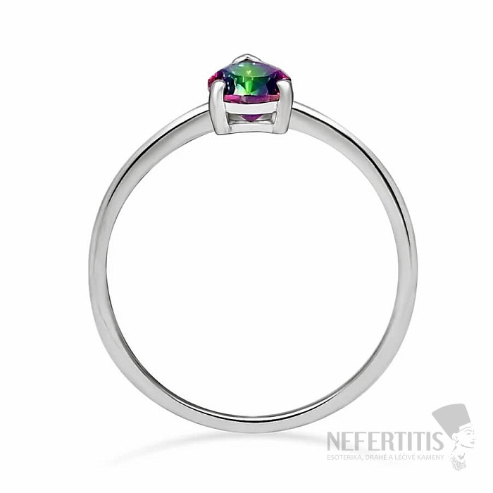 Elegantný a jemný, napriek tomu nadčasový strieborný prsteň s brúseným mystickým topazom . Ag 925. Veľkosť kameňa cca 0,7 cm . Ilustratívne fotografie, farba kameňa sa môže mierne líšiť od fotografie. Vždy však dostanete šperk porovnateľnej kvality.