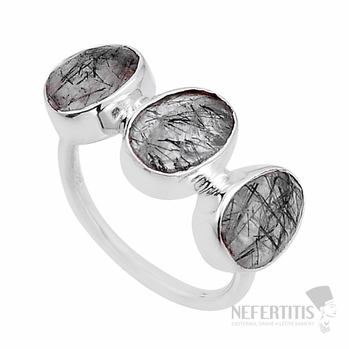 Strieborný prsteň z brúseného krištáľu s čiernym turmalínom . Ag 925. Veľkosť jednotlivých kameňov je cca 1 cm. Kupujete priamo vyobrazený šperk.