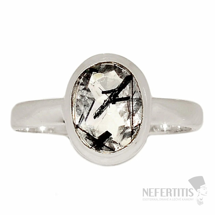 Strieborný prsteň z brúseného krištáľu s čiernym turmalínom . Ag 925. Kupujete priamo vyobrazený šperk. Veľkosť kameňa je cca 0,9 cm.