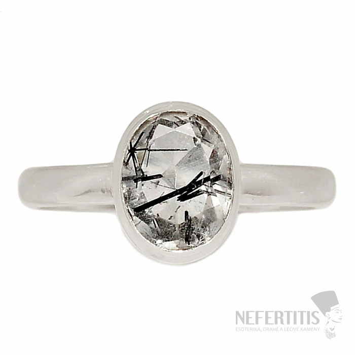 Strieborný prsteň z brúseného krištáľu s čiernym turmalínom . Ag 925. Kupujete priamo vyobrazený šperk. Veľkosť kameňa je cca 0,9 cm.