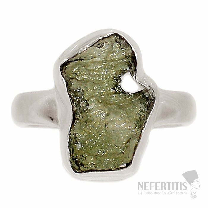 Strieborný prsteň s vltavínom. Ag 925. Vltavín je považovaný za talizman šťastia. Kupujete priamo vyobrazený kus. Veľkosť vltavínu cca 1,3 cm.