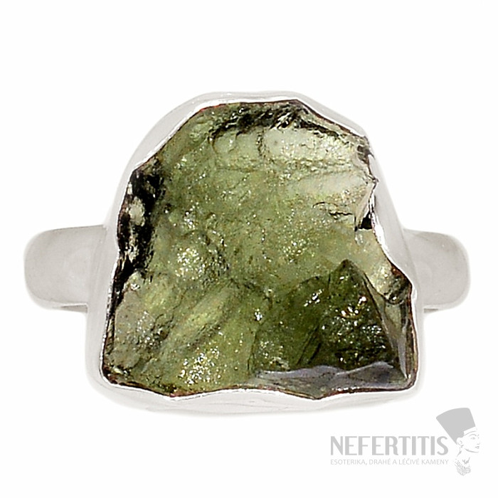 Strieborný prsteň s vltavínom. Ag 925. Vltavín je považovaný za talizman šťastia. Kupujete priamo vyobrazený kus. Veľkosť vltavínu cca 1,4 cm.