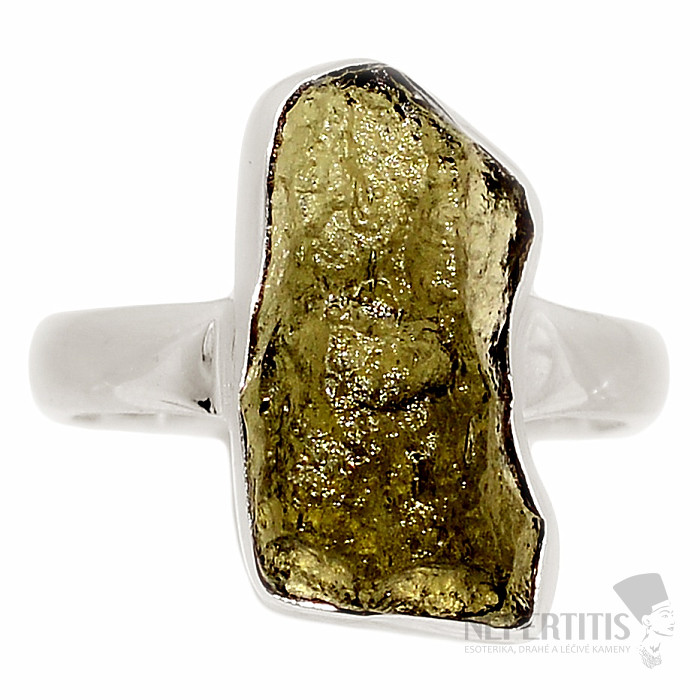 Strieborný prsteň s vltavínom. Ag 925. Vltavín je považovaný za talizman šťastia. Kupujete priamo vyobrazený kus. Veľkosť vltavínu cca 1,6 cm.