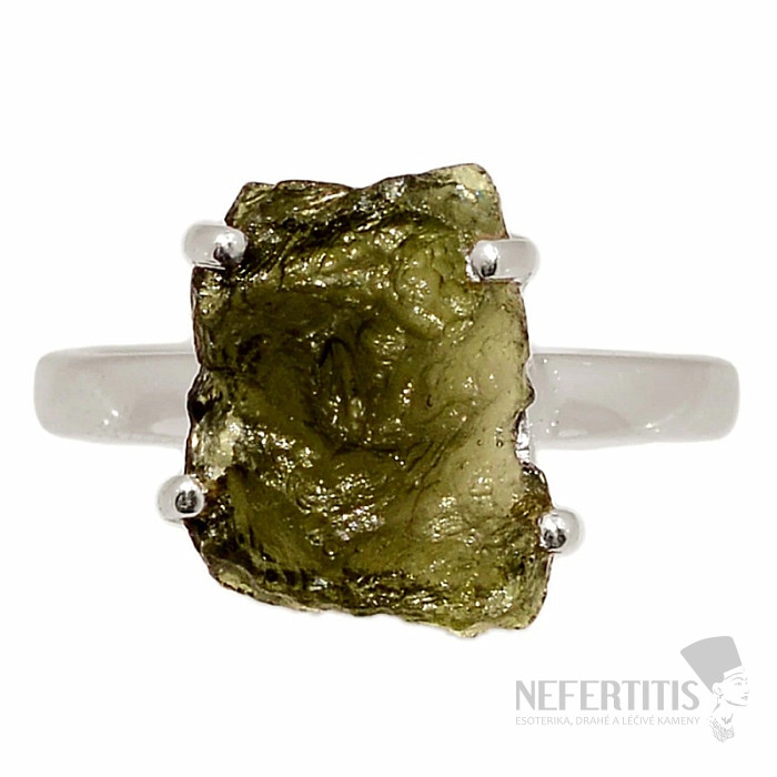Strieborný prsteň s vltavínom. Ag 925. Vltavín je považovaný za talizman šťastia. Kupujete priamo vyobrazený kus. Veľkosť vltavínu cca 1,3 cm.