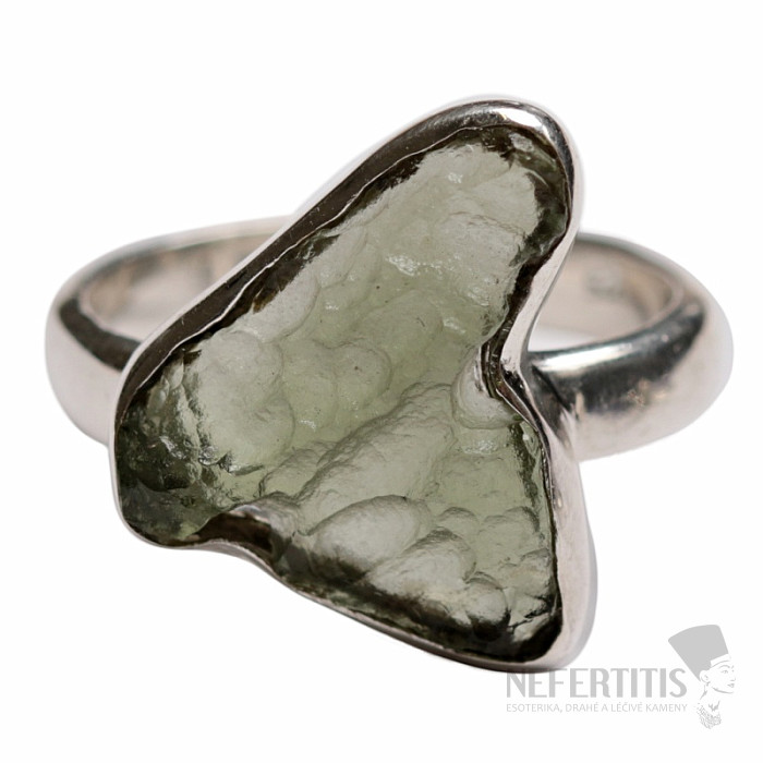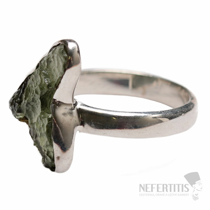 Strieborný prsteň s vltavínom. Ag 925. Vltavín je považovaný za talizman šťastia. Kupujete priamo vyobrazený kus. Veľkosť vltavínu cca 1,6 cm.