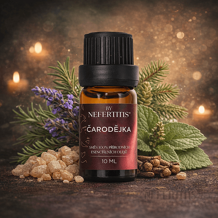 By Nefertitis Čarodejnica je rituálna, magická zmes 100% esenciálnych olejov z levandule, pačule, pravého kadidlovníka a rozmarínu. Vznikla ako jedinečná kompozícia v našej kúzelnej dielni Nefertitis, inšpirovaná silou intuície, vnútornej múdrosti a vedomej práce so zámerom. Hlboké zemito-živicové tóny sa prelínajú s bylinnou sviežosťou a jemnou kvetovou hebkosťou, čím vytvárajú výraznú, mystickú a zároveň harmonickú vôňu vhodnú pre osobné rituály aj vnútornú prácu.