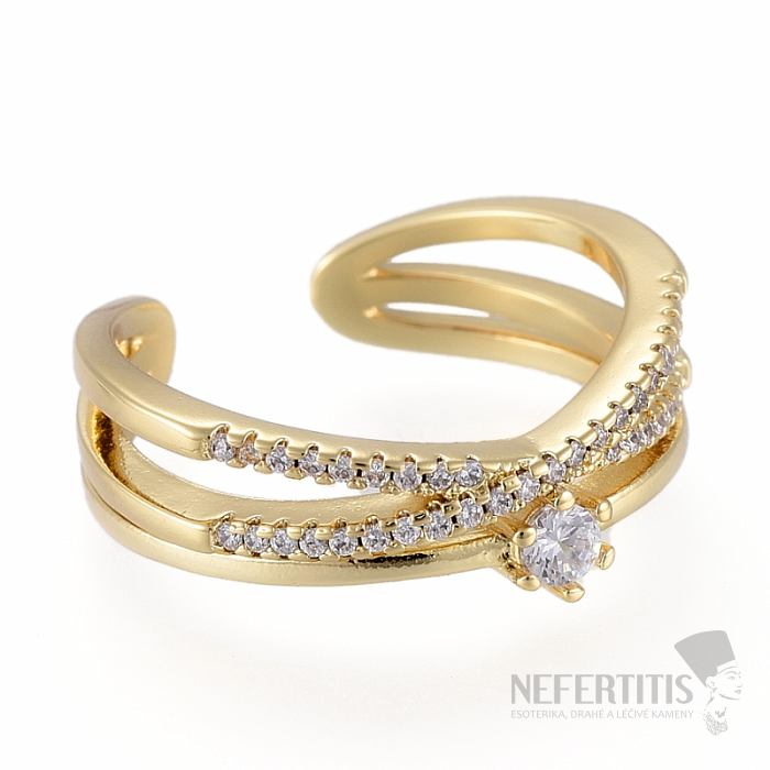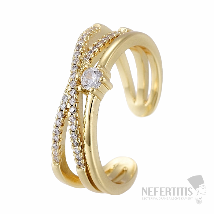 Dámsky pozlátený prsteň kubická zirkónia Criss Cross