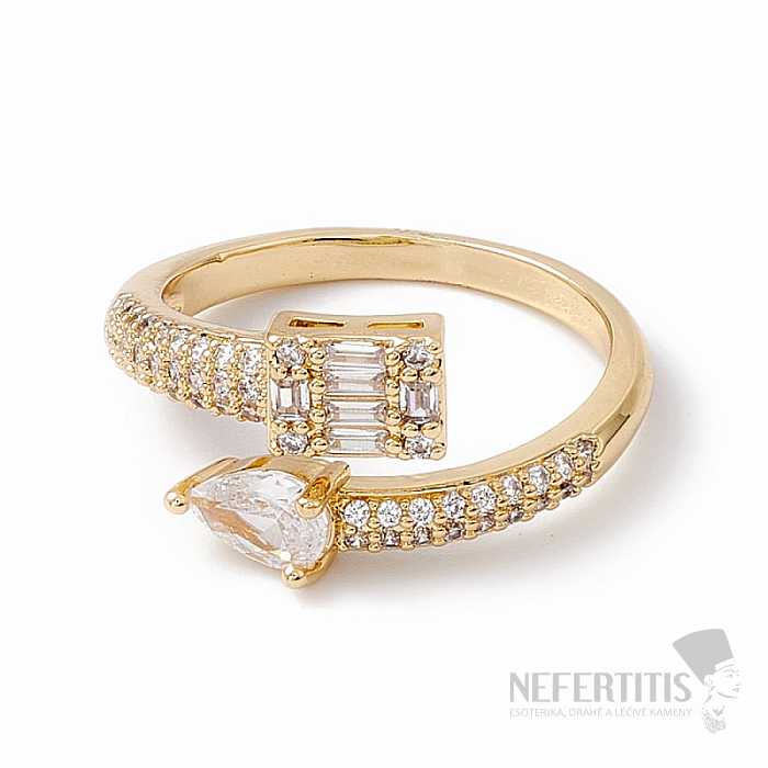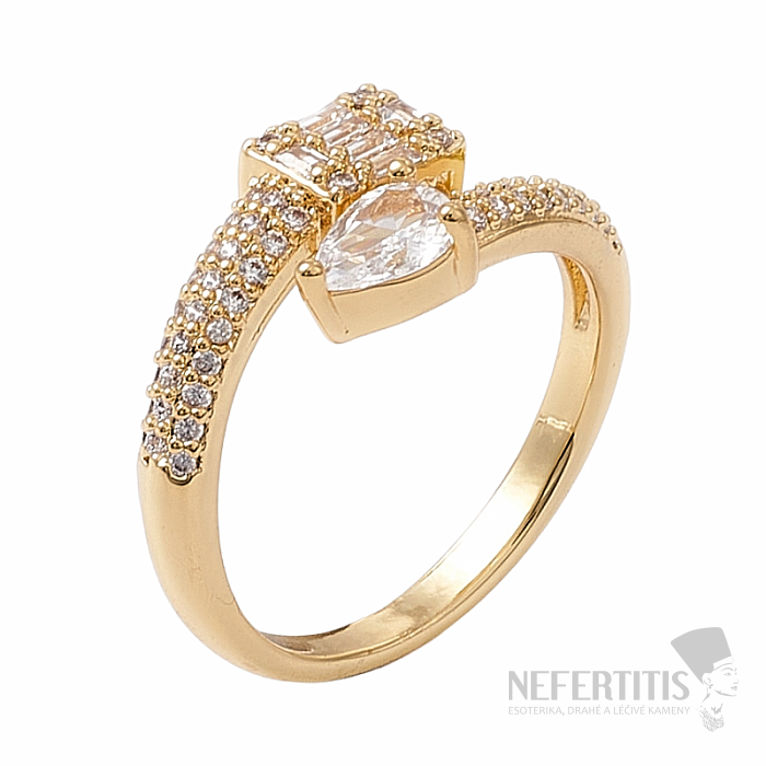 Dámsky pozlátený prsteň kubická zirkónia Kvapka