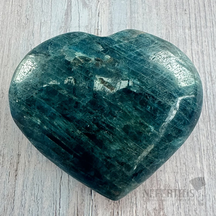 Leštený apatit v tvare srdca výberovej kvality. Krajina pôvodu: Madagaskar. Kupujete priamo vyobrazené srdce. Stojančeky a podstavce pod minerálmi kúpite tu. Modrý apatit je kameňom intuície, komunikácie a osobného… viac »