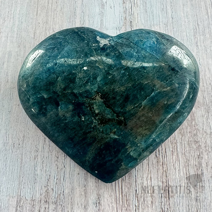 Leštený apatit v tvare srdca výberovej kvality. Krajina pôvodu: Madagaskar. Kupujete priamo vyobrazené srdce. Stojančeky a podstavce pod minerálmi kúpite tu. Modrý apatit je kameňom intuície, komunikácie a osobného… viac »