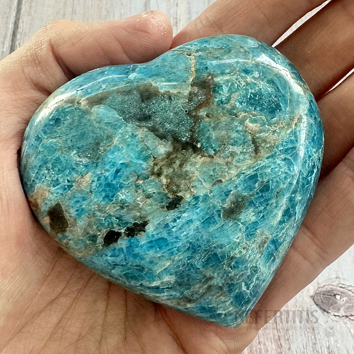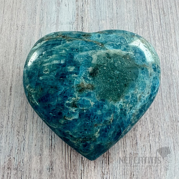 Leštený apatit v tvare srdca výberovej kvality. Krajina pôvodu: Madagaskar. Kupujete priamo vyobrazené srdce. Stojančeky a podstavce pod minerálmi kúpite tu. Modrý apatit je kameňom intuície, komunikácie a osobného… viac »