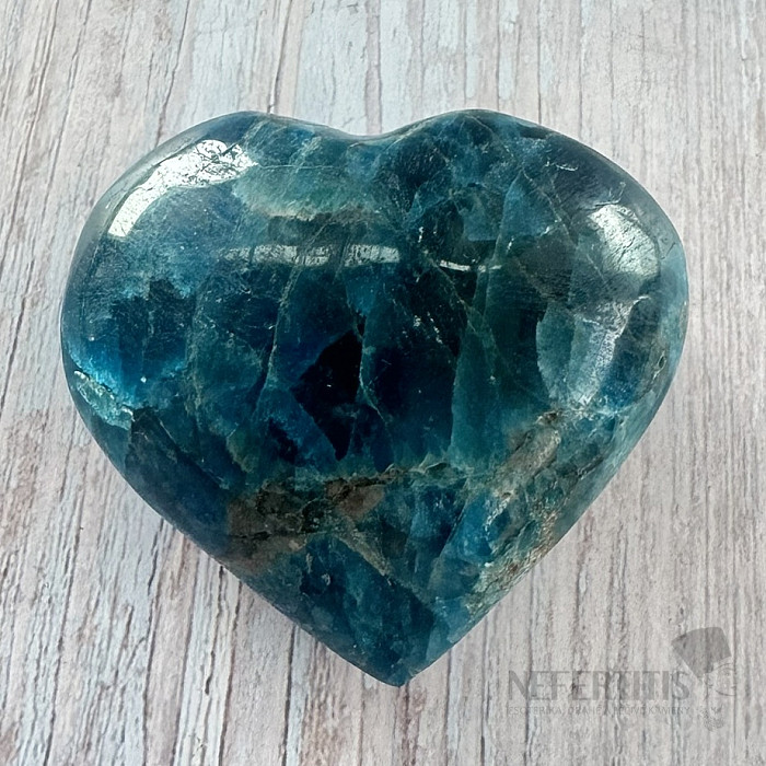 Leštený apatit v tvare srdca výberovej kvality. Krajina pôvodu: Madagaskar. Kupujete priamo vyobrazené srdce. Stojančeky a podstavce pod minerálmi kúpite tu. Modrý apatit je kameňom intuície, komunikácie a osobného… viac »