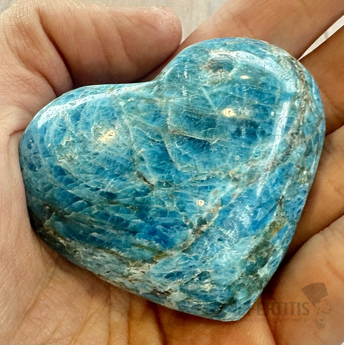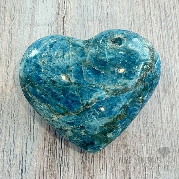 Leštený apatit v tvare srdca výberovej kvality. Krajina pôvodu: Madagaskar. Kupujete priamo vyobrazené srdce. Stojančeky a podstavce pod minerálmi kúpite tu. Modrý apatit je kameňom intuície, komunikácie a osobného… viac »