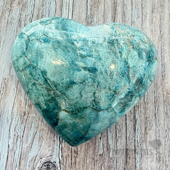 Leštený apatit v tvare srdca výberovej kvality. Krajina pôvodu: Madagaskar. Kupujete priamo vyobrazené srdce. Stojančeky a podstavce pod minerálmi kúpite tu. Modrý apatit je kameňom intuície, komunikácie a osobného… viac »