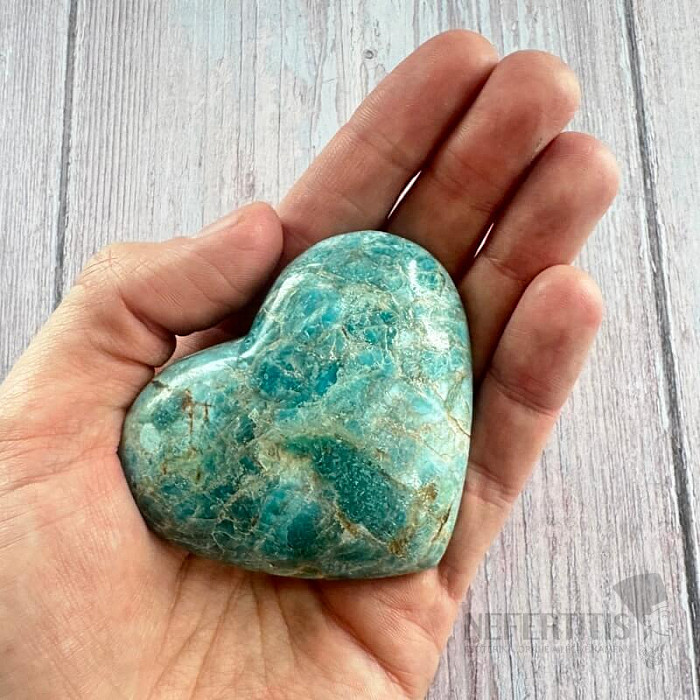 Leštený apatit v tvare srdca výberovej kvality. Krajina pôvodu: Madagaskar. Kupujete priamo vyobrazené srdce. Stojančeky a podstavce pod minerálmi kúpite tu. Modrý apatit je kameňom intuície, komunikácie a osobného… viac »