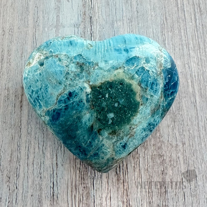Leštený apatit v tvare srdca výberovej kvality. Krajina pôvodu: Madagaskar. Kupujete priamo vyobrazené srdce. Stojančeky a podstavce pod minerálmi kúpite tu. Modrý apatit je kameňom intuície, komunikácie a osobného… viac »