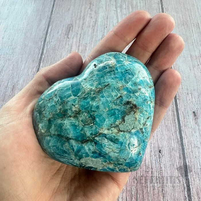Leštený apatit v tvare srdca výberovej kvality. Krajina pôvodu: Madagaskar. Kupujete priamo vyobrazené srdce. Stojančeky a podstavce pod minerálmi kúpite tu. Modrý apatit je kameňom intuície, komunikácie a osobného… viac »