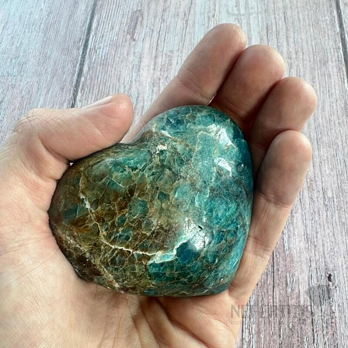 Leštený apatit v tvare srdca výberovej kvality. Krajina pôvodu: Madagaskar. Kupujete priamo vyobrazené srdce. Stojančeky a podstavce pod minerálmi kúpite tu. Modrý apatit je kameňom intuície, komunikácie a osobného… viac »