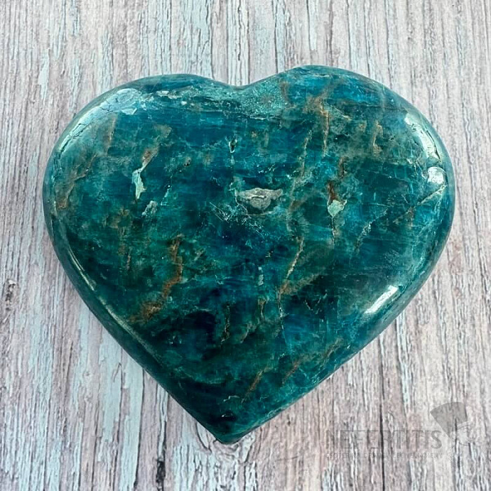 Leštený apatit v tvare srdca výberovej kvality. Krajina pôvodu: Madagaskar. Kupujete priamo vyobrazené srdce. Stojančeky a podstavce pod minerálmi kúpite tu. Modrý apatit je kameňom intuície, komunikácie a osobného… viac »