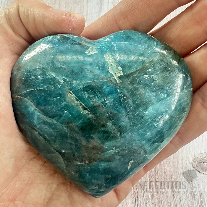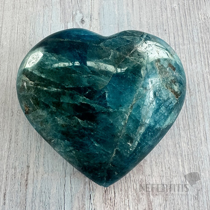 Leštený apatit v tvare srdca výberovej kvality. Krajina pôvodu: Madagaskar. Kupujete priamo vyobrazené srdce. Stojančeky a podstavce pod minerálmi kúpite tu. Modrý apatit je kameňom intuície, komunikácie a osobného… viac »