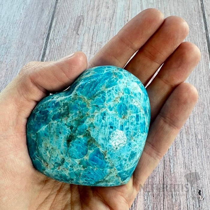 Leštený apatit v tvare srdca výberovej kvality. Krajina pôvodu: Madagaskar. Kupujete priamo vyobrazené srdce. Stojančeky a podstavce pod minerálmi kúpite tu. Modrý apatit je kameňom intuície, komunikácie a osobného… viac »