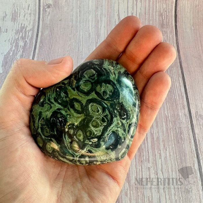 Atraktívne leštené srdce z jaspisu kambaba vo výberovej kvalite. Krajina pôvodu: Madagaskar. Kupujete priamo vyobrazený jaspis kambaba. Prírodný materiál môže obsahovať jemné prasklinky alebo dutinky. Srdce do života… viac »