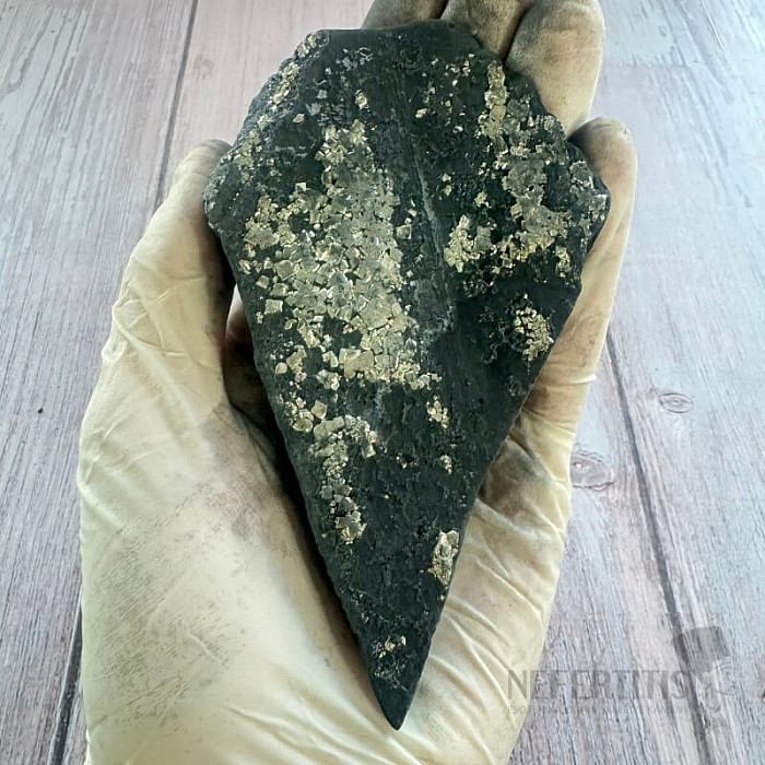 Zbierkový surový šungit s kryštálmi pyritu . Kupujete priamo vyobrazený kus