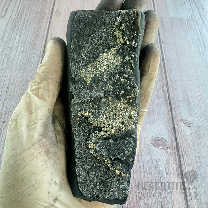 Zbierkový surový šungit s kryštálmi pyritu . Kupujete priamo vyobrazený kus