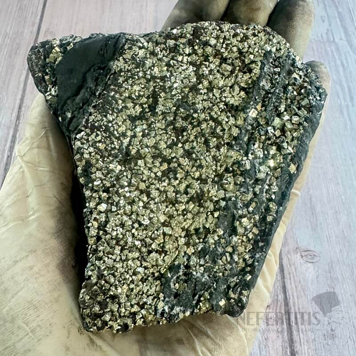 Zbierkový surový šungit s kryštálmi pyritu . Kupujete priamo vyobrazený kus