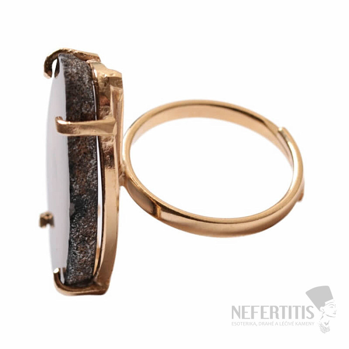 Objavte kúzlo elegancie s týmto pozláteným prsteňom, ktorého dominantou je veľký plátok achátu. Každý kameň je originál. Achát je kameňom ochrany, sily a harmónie a skvele podčiarkne vašu osobnosť. Materiál: prírodný kameň, pozlátená mosadz. Kupujete priamo vyobrazený prsteň.