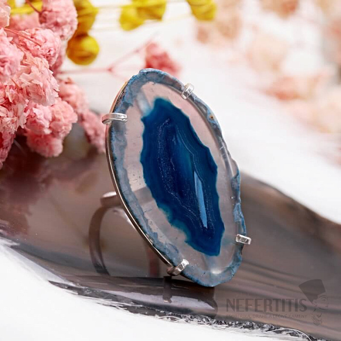 Achát v tomto prsteni je dofarbený, aby vynikla jeho štruktúra.