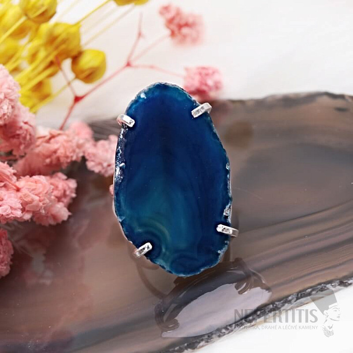 Achát v tomto prsteni je dofarbený, aby vynikla jeho štruktúra.