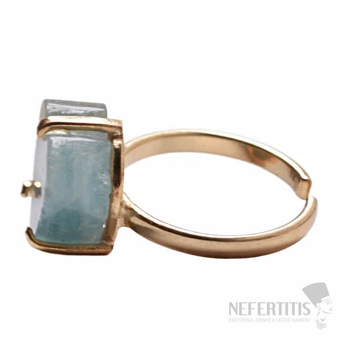 Objavte kúzlo elegancie s týmto pozláteným prsteňom s akvamarínom . Akvamarín je kameňom morskej hĺbky a čistého neba. Každý kameň je originál. Akvamarín je známy ako kameň odvahy, pokoja a pravdivej komunikácie. Upokojuje myseľ, pomáha zbaviť sa strachu a podporuje vyjadrovanie vnútorných pocitov s láskavosťou a istotou. Je obľúbeným talizmanom pre tých, ktorí hľadajú harmóniu medzi srdcom a hlasom. Materiál: prírodný kameň, pozlátená mosadz. Kupujete priamo vyobrazený šperk.