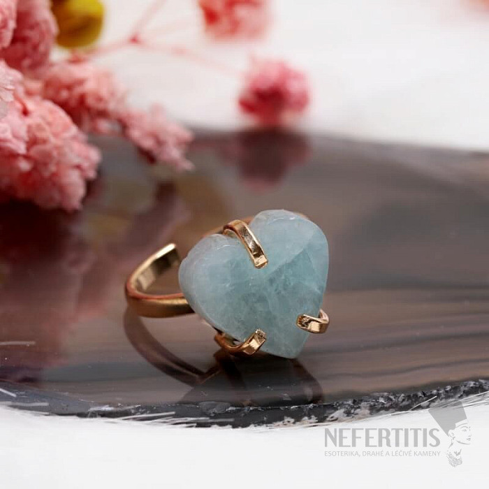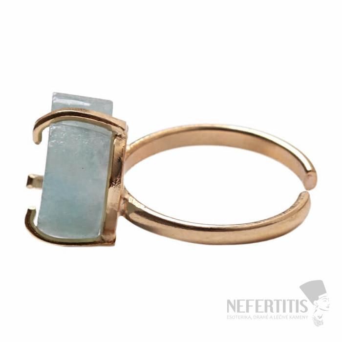 Objavte kúzlo elegancie s týmto pozláteným prsteňom s akvamarínom . Akvamarín je kameňom morskej hĺbky a čistého neba. Každý kameň je originál. Akvamarín je známy ako kameň odvahy, pokoja a pravdivej komunikácie. Upokojuje myseľ, pomáha zbaviť sa strachu a podporuje vyjadrovanie vnútorných pocitov s láskavosťou a istotou. Je obľúbeným talizmanom pre tých, ktorí hľadajú harmóniu medzi srdcom a hlasom. Materiál: prírodný kameň, pozlátená mosadz. Kupujete priamo vyobrazený šperk.