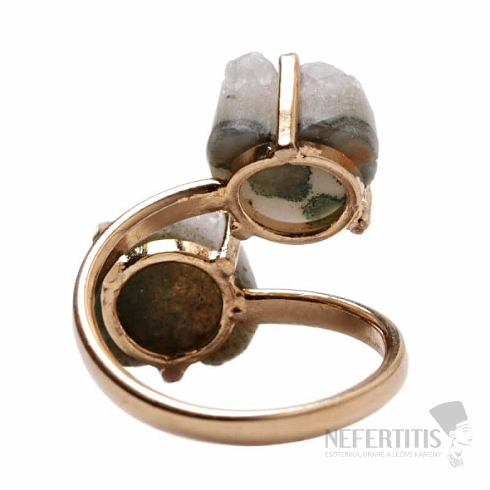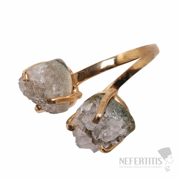 Objavte kúzlo nežnej elegancie s týmto pozláteným prsteňom, ktorého dominantou sú dve drúzy ametystu. Každý kameň je originál. Prsteň je oslavou ženskej krásy a individuality. Ametyst je kameňom vášne, lásky a porozumenia. Materiál: prírodný kameň, pozlátená mosadz. Kupujete priamo vyobrazený prsteň.