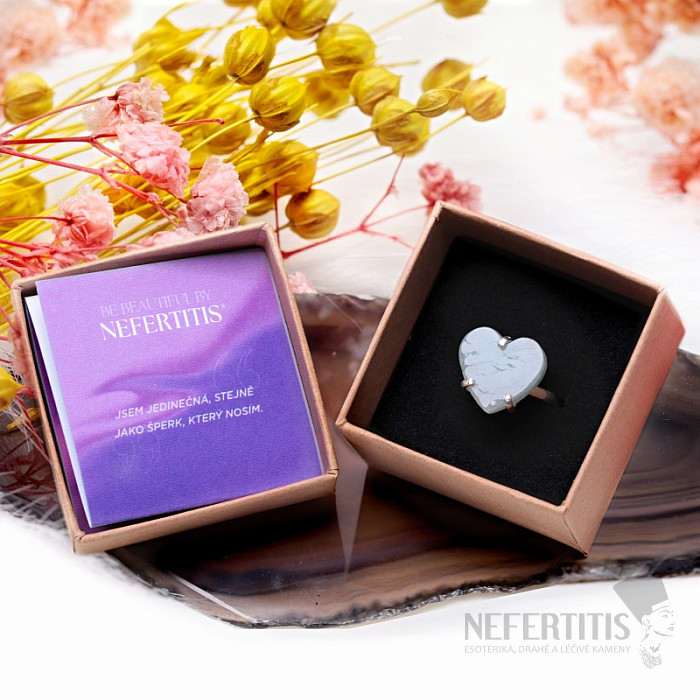Prsteň je uložený do craftovej krabičky z prírodného materiálu , ktorá skvele dopňuje prsteň z prírodného kameňa. K prsteňu od nás obdržíte sadu 7 afirmácií – na každý deň v týždni jednu – ktoré jemne posilnia vašu jedinečnosť, výnimočnosť a vieru v seba samého. Sú to malé pripomienky toho, kým naozaj ste.