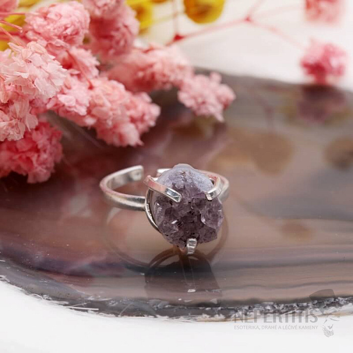 Be Beautiful - buď krásna, buď jedinečná Objavte kúzlo nežnej elegancie s týmto postriebreným prsteňom, ktorého dominantou je drúza ametystu. Každý kameň je originál. Prsteň je oslavou ženskej krásy a individuality… viac »