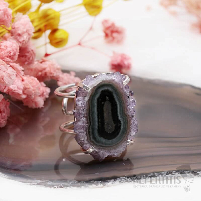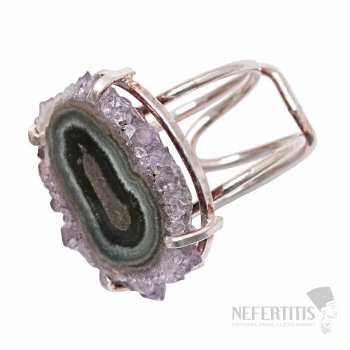 Be Beautiful - buď krásna, buď jedinečná Objavte kúzlo elegancie s týmto postriebreným prsteňom, ktorého dominantou je rez kvapľníkom - stalaktitom ametystu. Každý kameň je originál. Ametyst je kameňom lásky, vášne a… viac »