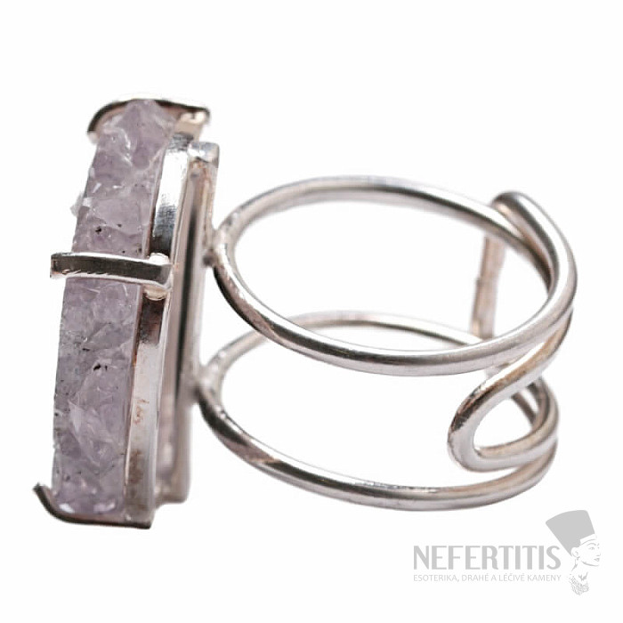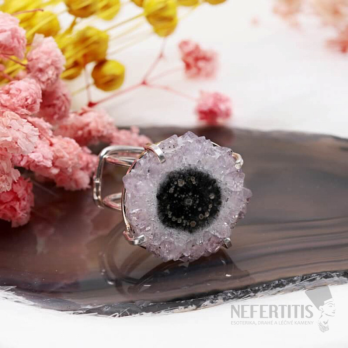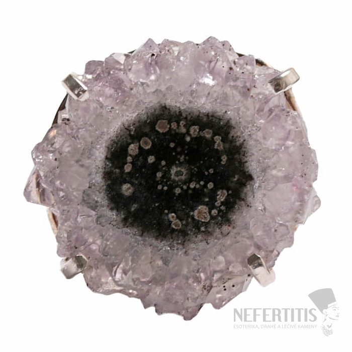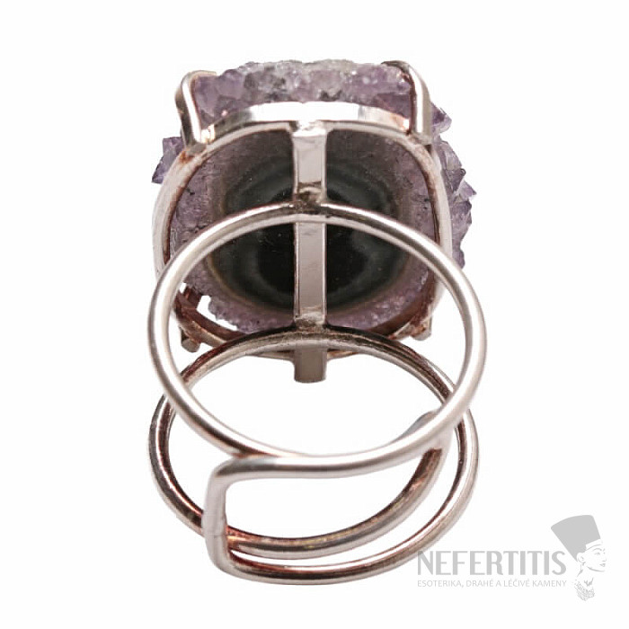 Objavte kúzlo elegancie s týmto postriebreným prsteňom, ktorého dominantou je rez kvapľom - stalaktitom ametystu. Každý kameň je originál.
