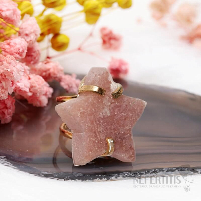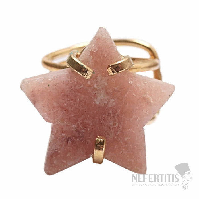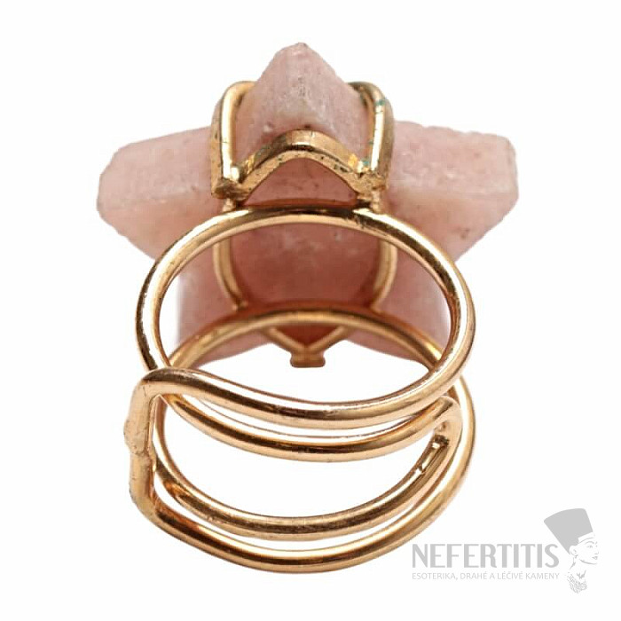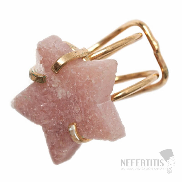 Objavte kúzlo nežnej elegancie s týmto pozláteným prsteňom, ktorého dominantou je hviezda z ružového ametystu. Tento minerál bol objavený pomerne nedávno, a to v Patagónii v Argentíne. Jeho ťažba je obmedzená a tým je ešte vzácnejšia. Každý kameň je originál. Prsteň je oslavou ženskej krásy a individuality. Ametyst je kameňom vášne, lásky a porozumenia. Materiál: prírodný kameň, pozlátená mosadz. Kupujete priamo vyobrazený prsteň.