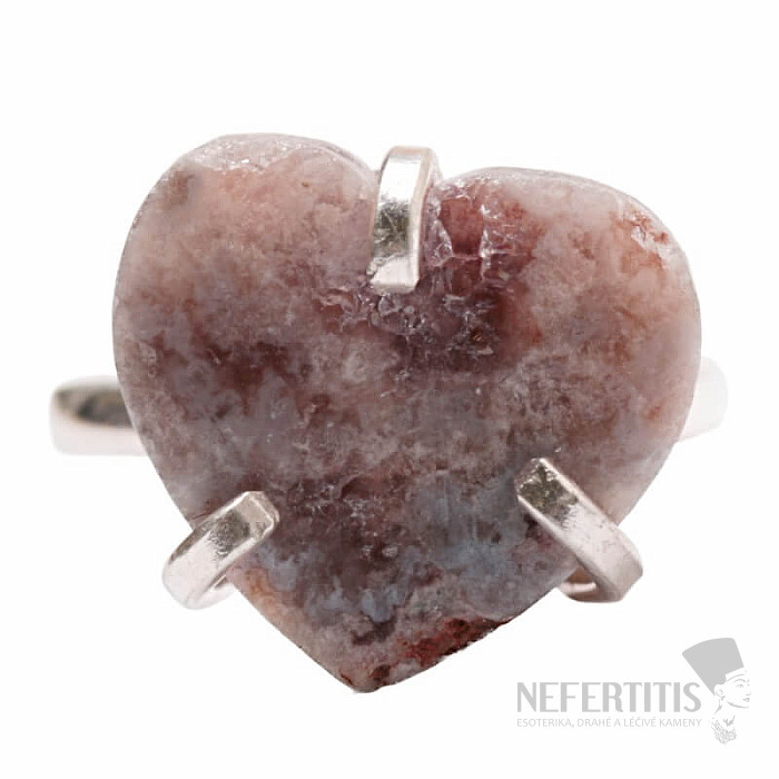 Objavte kúzlo nežnej elegancie s týmto postriebreným prsteňom, ktorého dominantou je srdce z ružového ametystu. Tento minerál bol objavený pomerne nedávno, a to v Patagónii v Argentíne. Jeho ťažba je obmedzená a tým je ešte vzácnejšia. Každý kameň je originál. Prsteň je oslavou ženskej krásy a individuality. Ametyst je kameňom vášne, lásky a porozumenia. Materiál: prírodný kameň, postriebrená mosadz. Kupujete priamo vyobrazený prsteň.
