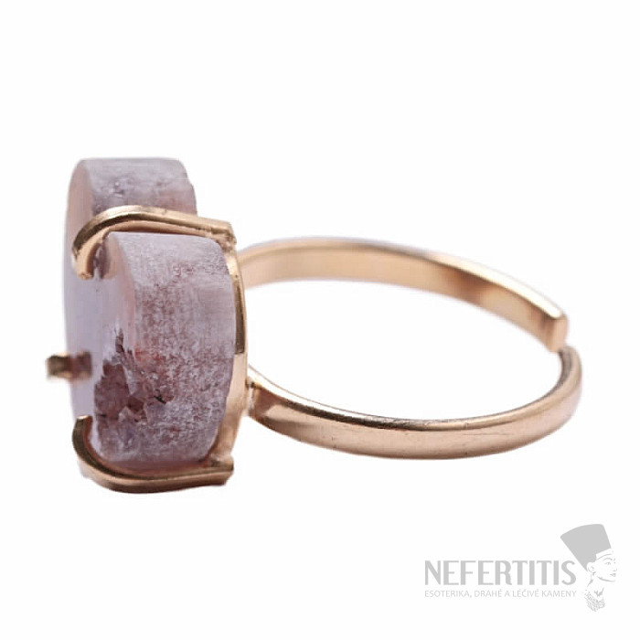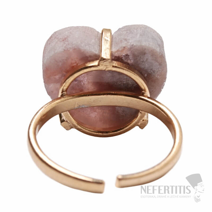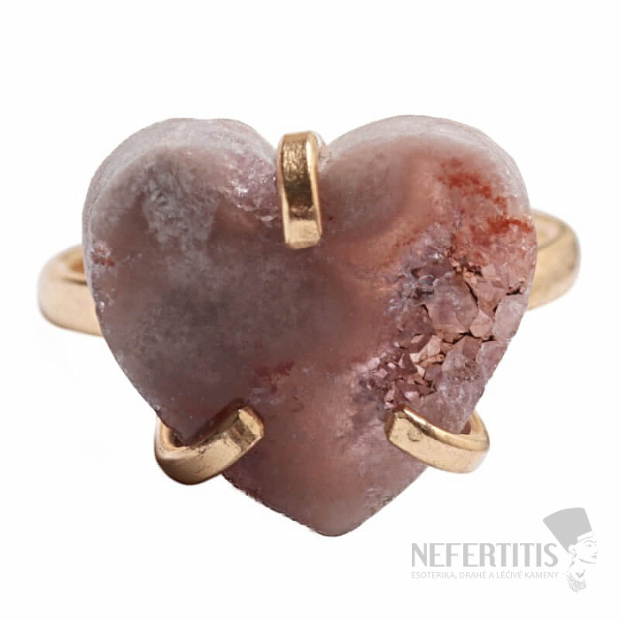 Objavte kúzlo nežnej elegancie s týmto pozláteným prsteňom, ktorého dominantou je srdce z ružového ametystu. Tento minerál bol objavený pomerne nedávno, a to v Patagónii v Argentíne. Jeho ťažba je obmedzená a tým je ešte vzácnejšia. Každý kameň je originál. Prsteň je oslavou ženskej krásy a individuality. Ametyst je kameňom vášne, lásky a porozumenia. Materiál: prírodný kameň, pozlátená mosadz. Kupujete priamo vyobrazený prsteň.