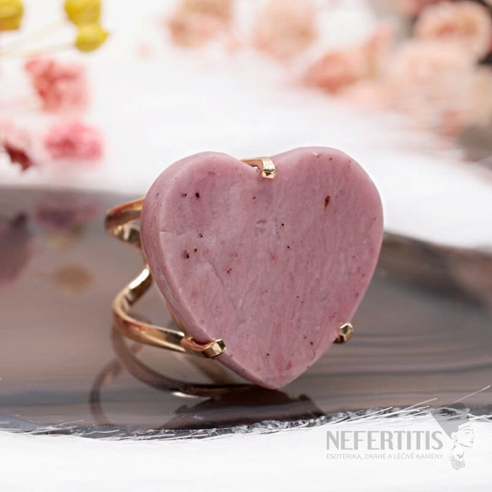 Objavte kúzlo nežnej elegancie s týmto pozláteným prsteňom, ktorého dominantou je veľký jahodový krištáľ v tvare srdca . Každý kameň je originál. Vyznačuje sa jemnými ružovými tónmi a prírodnými inklúziami. Srdce symbolizuje lásku, radosť, šťastie a krištáľ podnecuje sebalásku, jemnosť, harmóniu a vnútorný pokoj. Materiál: prírodný kameň, pozlátená mosadz. Kupujete priamo vyobrazený prsteň.