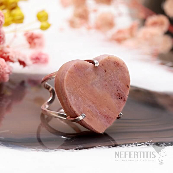 Objavte kúzlo nežnej elegancie s týmto postriebreným prsteňom, ktorého dominantou je veľký jahodový krištáľ v tvare srdca . Každý kameň je originál. Vyznačuje sa jemnými ružovými tónmi a prírodnými inklúziami. Srdce symbolizuje lásku, radosť, šťastie a krištáľ podnecuje sebalásku, jemnosť, harmóniu a vnútorný pokoj. Materiál: prírodný kameň, postriebrená mosadz. Kupujete priamo vyobrazený prsteň.