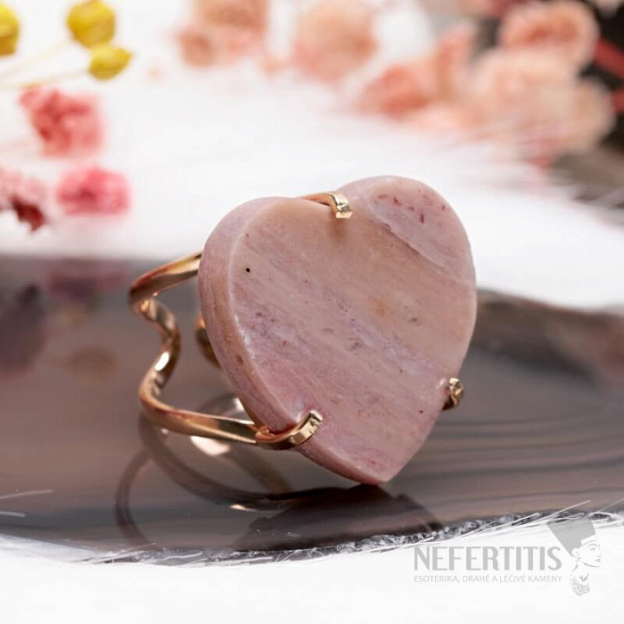 Objavte kúzlo nežnej elegancie s týmto pozláteným prsteňom, ktorého dominantou je veľký jahodový krištáľ v tvare srdca . Každý kameň je originál. Vyznačuje sa jemnými ružovými tónmi a prírodnými inklúziami. Srdce symbolizuje lásku, radosť, šťastie a krištáľ podnecuje sebalásku, jemnosť, harmóniu a vnútorný pokoj. Materiál: prírodný kameň, pozlátená mosadz. Kupujete priamo vyobrazený prsteň.