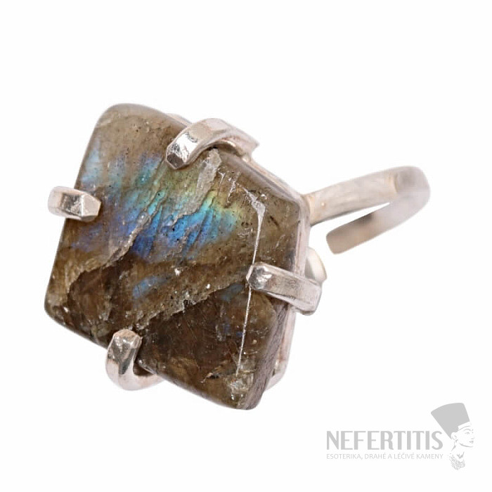 Objavte kúzlo elegancie s týmto postriebreným prsteňom s labradoritom s tajomnou hrou modrých a zlatistých odleskov. Každý kameň je originál, ktorý sa rozžiari podľa uhla dopadajúceho svetla. Labradorit je kameňom intuície, ochrany a transformácie. Materiál: prírodný kameň, postriebrená mosadz. Kupujete priamo vyobrazený prsteň.