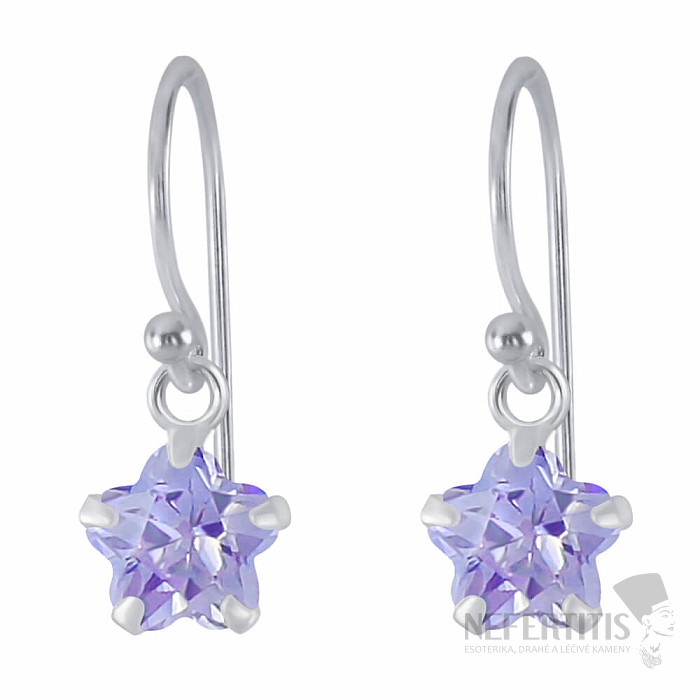 01517 Strieborné visiace náušnice 18 mm LAVENDER STAR