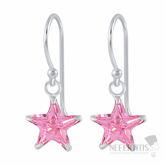 02108 Strieborné visiace náušnice 22 mm PINK STAR