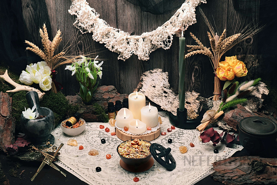 Nefertitis vykurovacia zmes Imbolc - oslava svetla, nádeje a nových začiatkov: oslávte návrat svetla a privítajte pozitívnu energiu do svojich domovov. Tešte sa na všetko, čo príde s novým rokom. Na fotografiách vidíte oltár z roku 2025 a 2026.