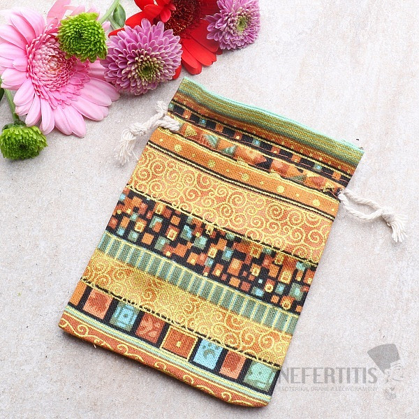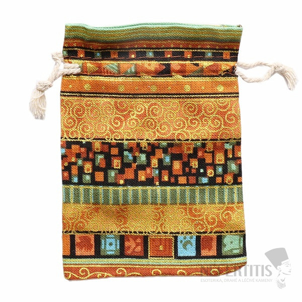 Plátený sáčok etno motív žltý so sťahovacou šnúrkou pre úschovu drobných cenností, kamienkov, šperkov a k atraktívnemu zabalenie a darčekov pre tých, ktorých máte radi. Práve darčekové sáčky a vačky sú ľahkou a lacnou alternatívou darčekových krabičiek. Doprajte svojim obľúbeným drobnostiam, šperkom či liečivým kamienkom pohodlie a ochranu vnútri tohto vrecka. Prevažujúca farba je žlto-zlatá. Rozmery vrecka: cca 10x14 cm. Materiál: látka.